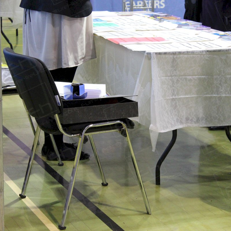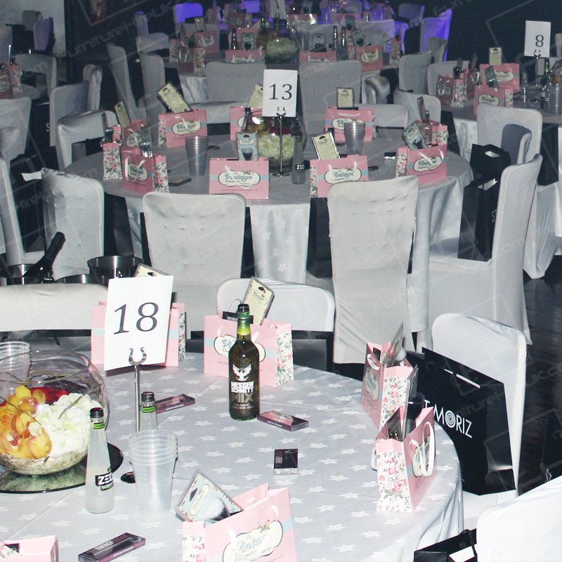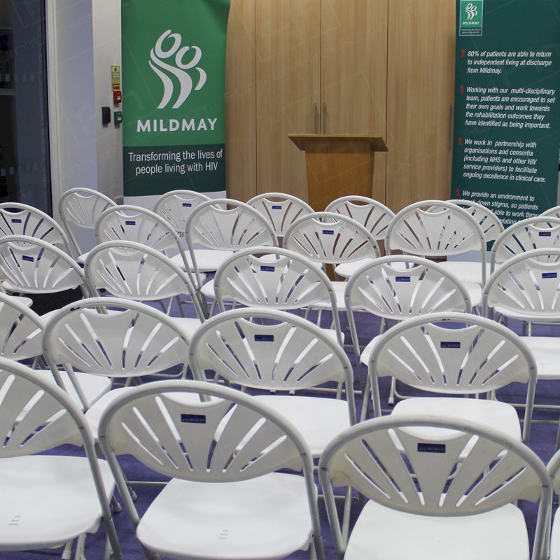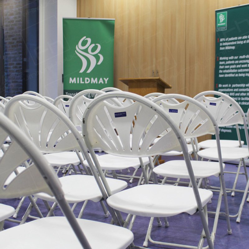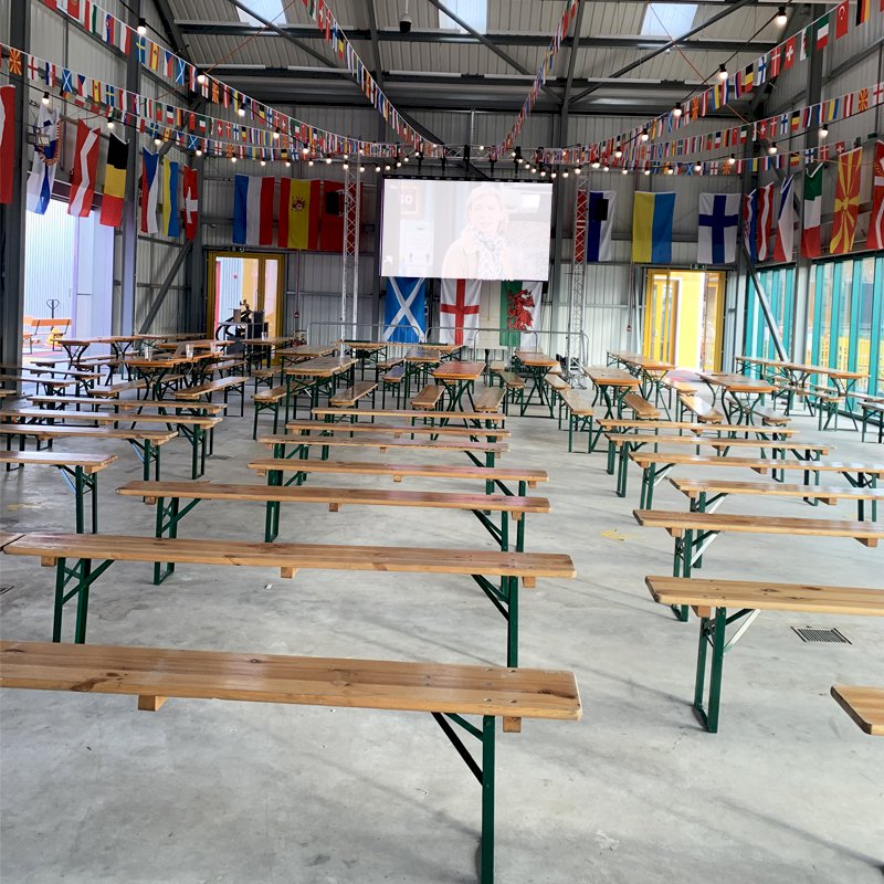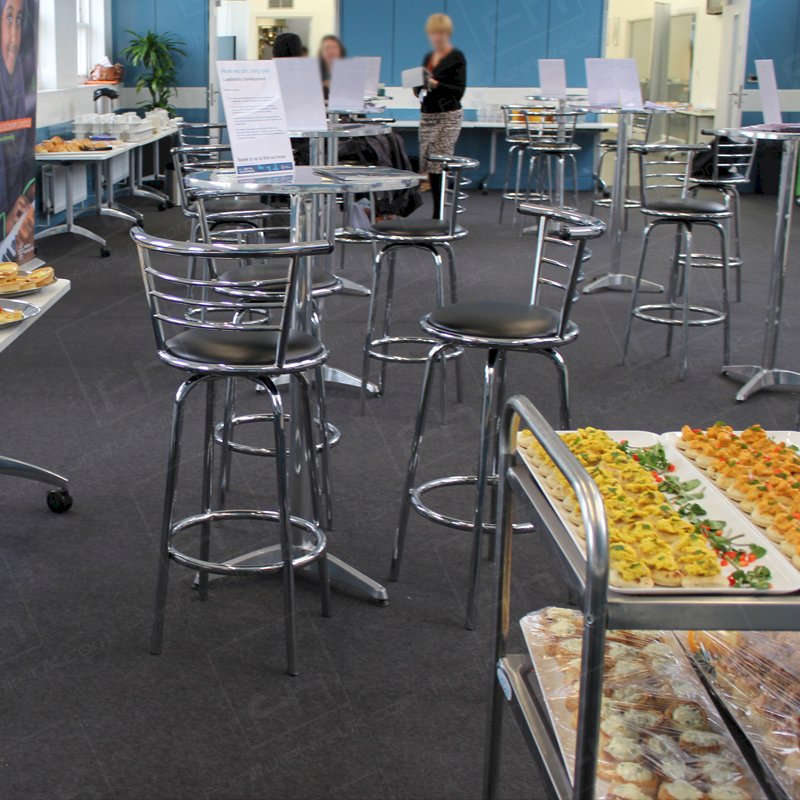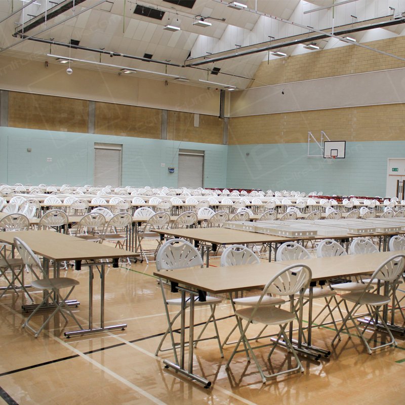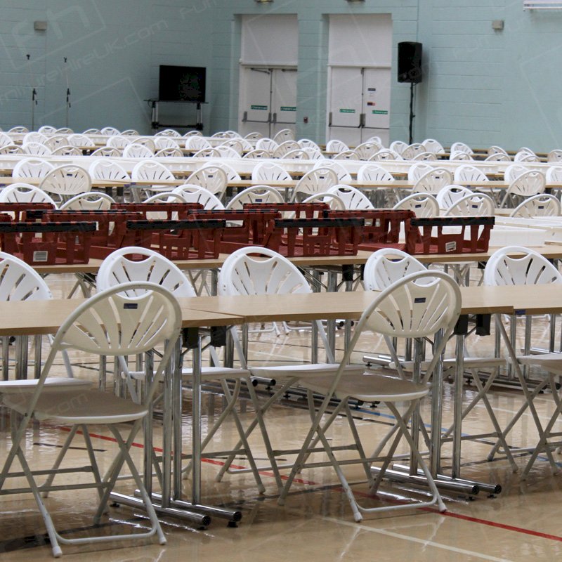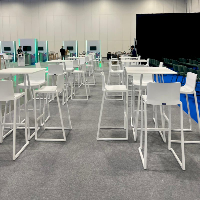Our banquet tables, folding chairs & poseur tables ready for the event.