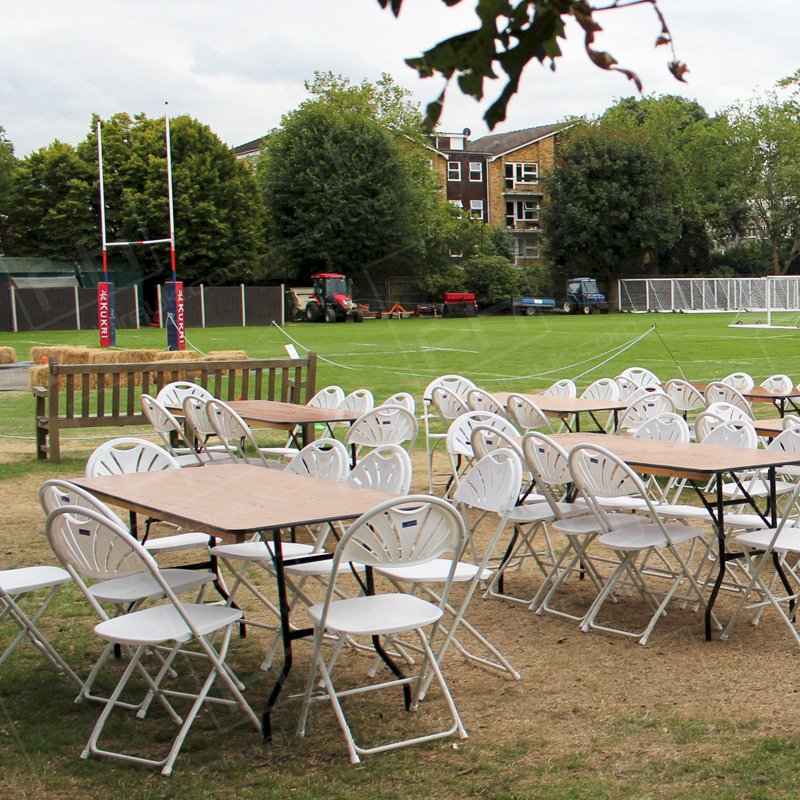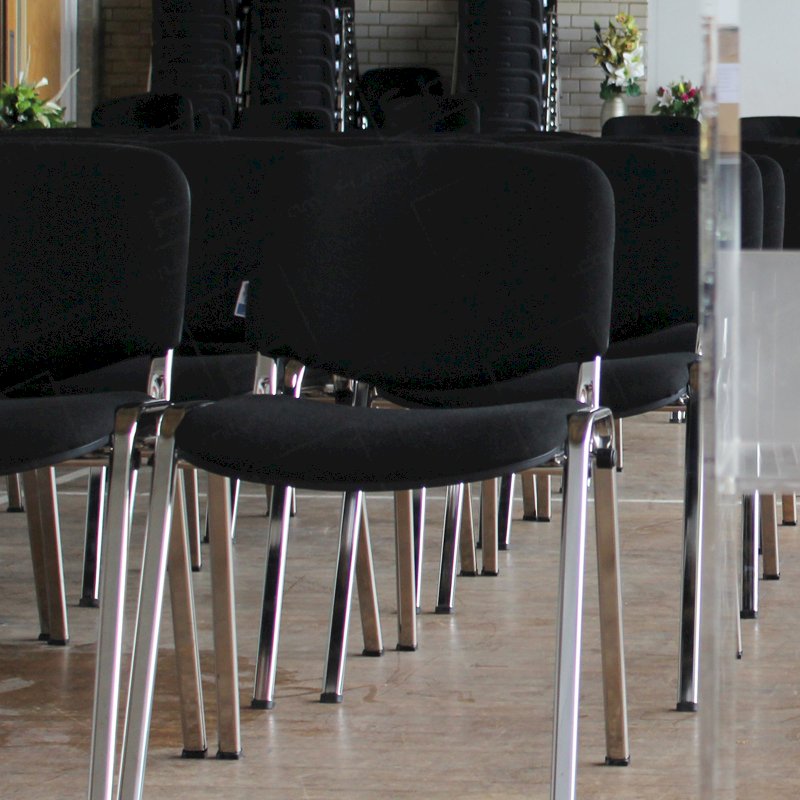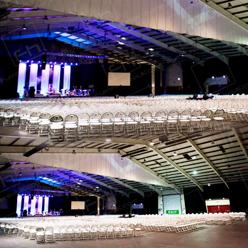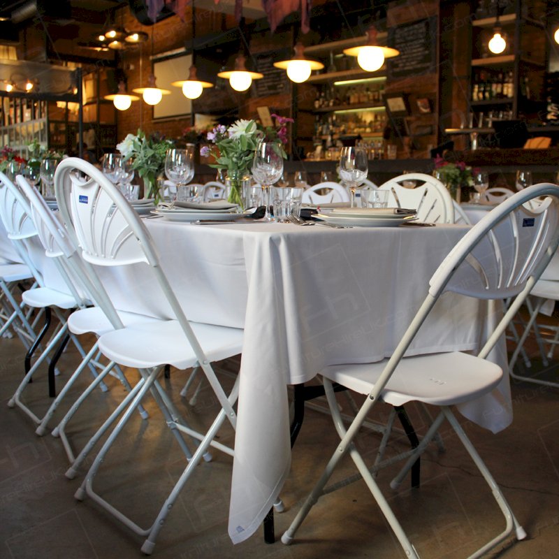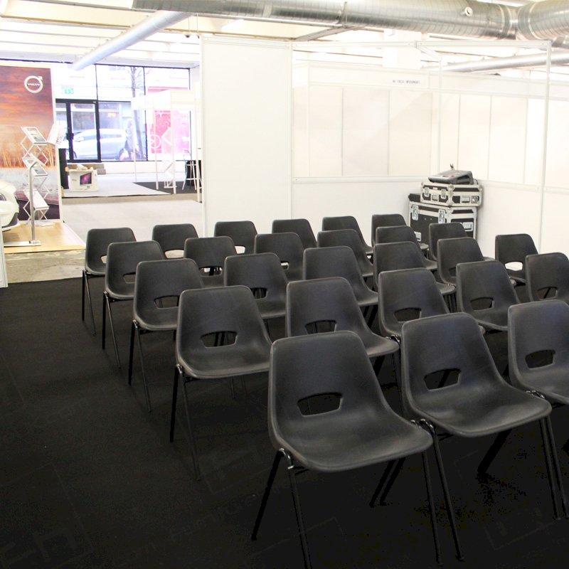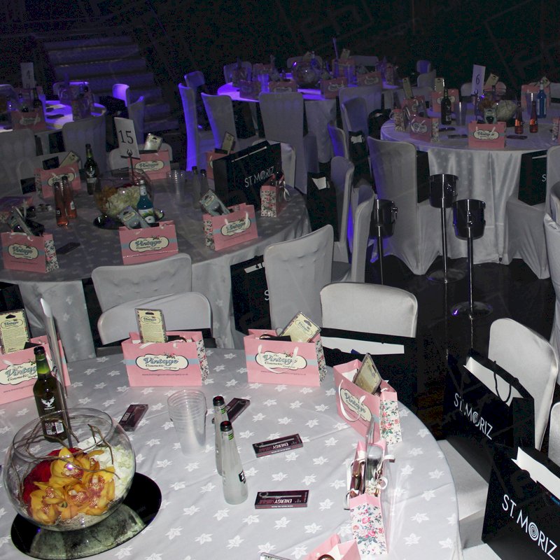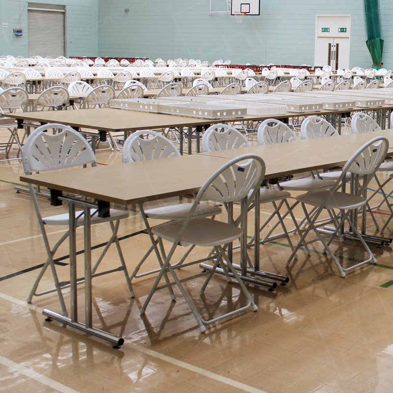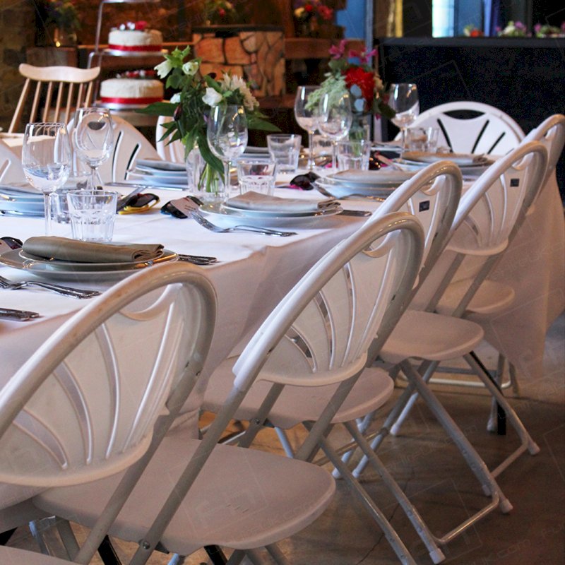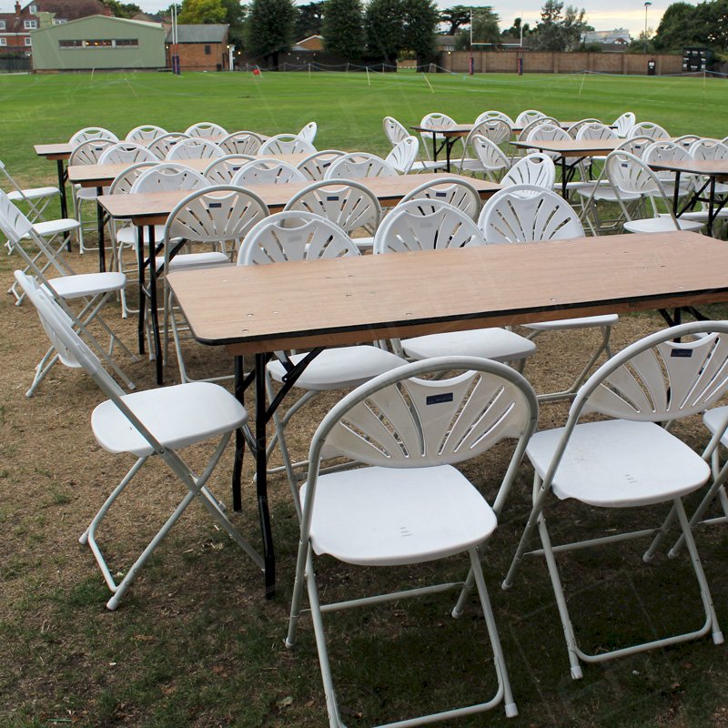 Our banquet tables, folding chairs & poseur tables ready for the event.