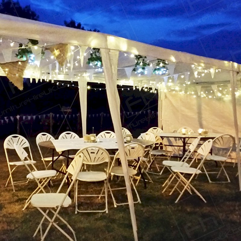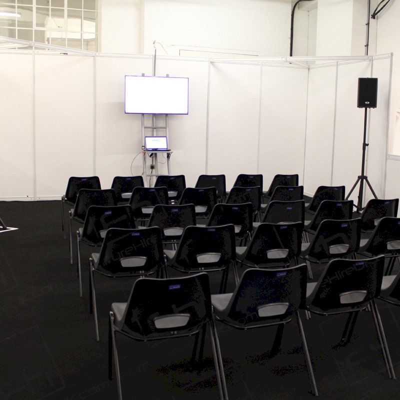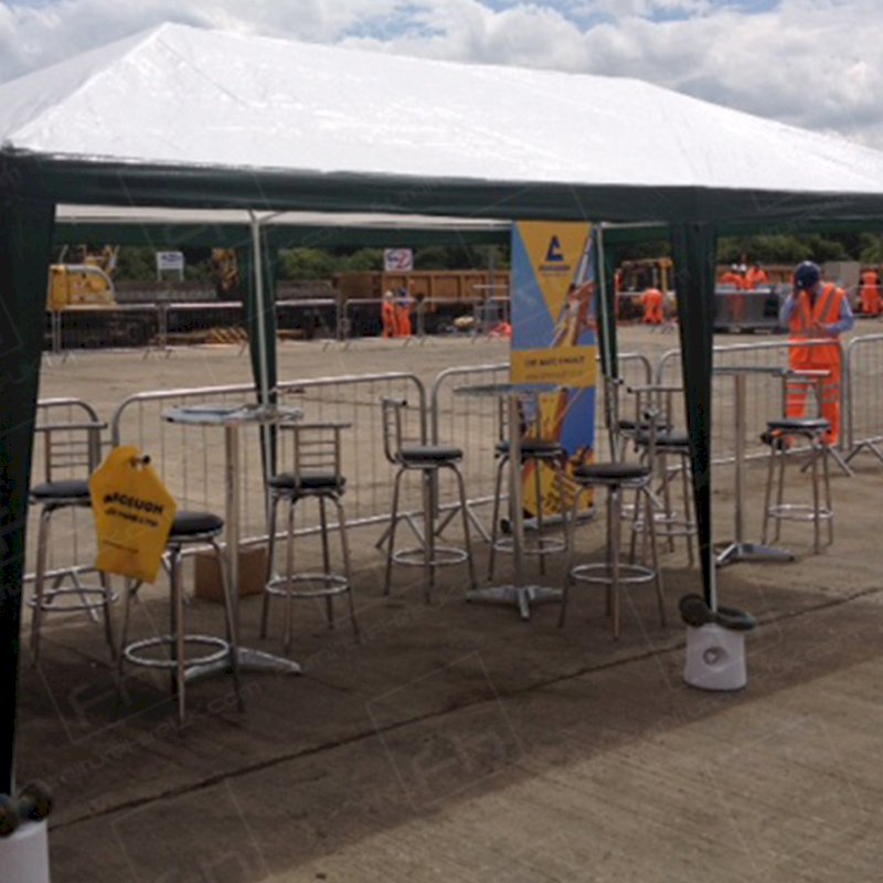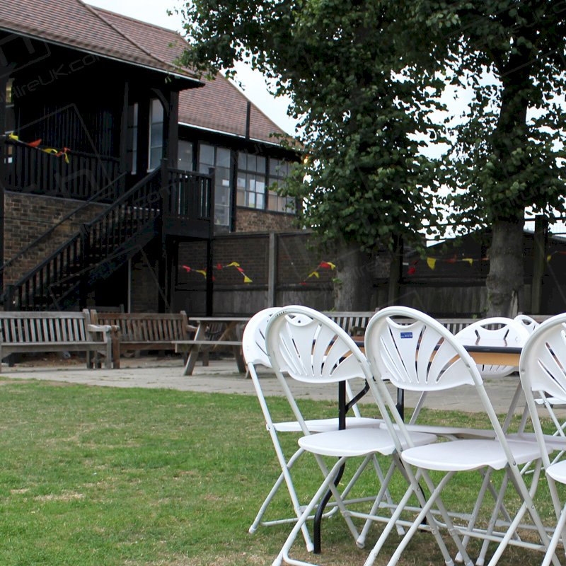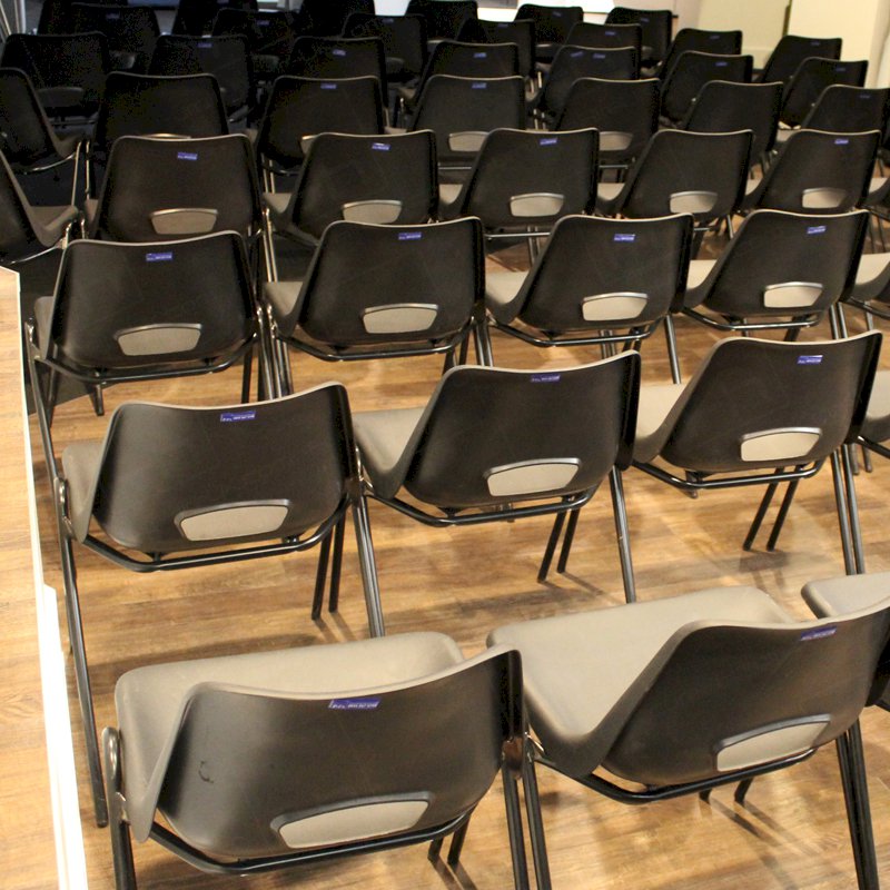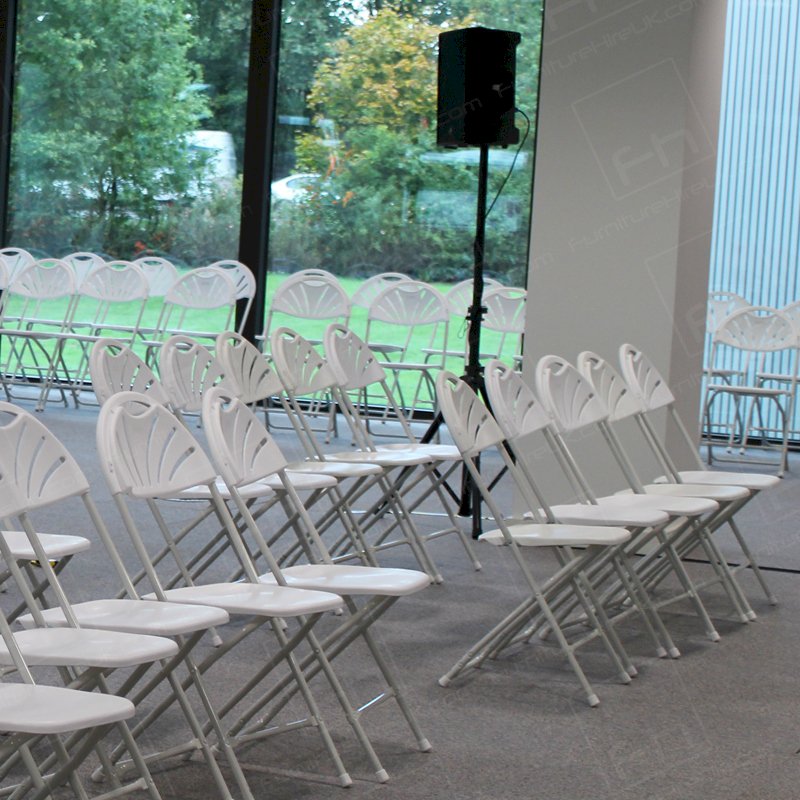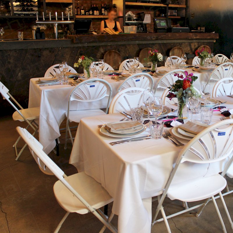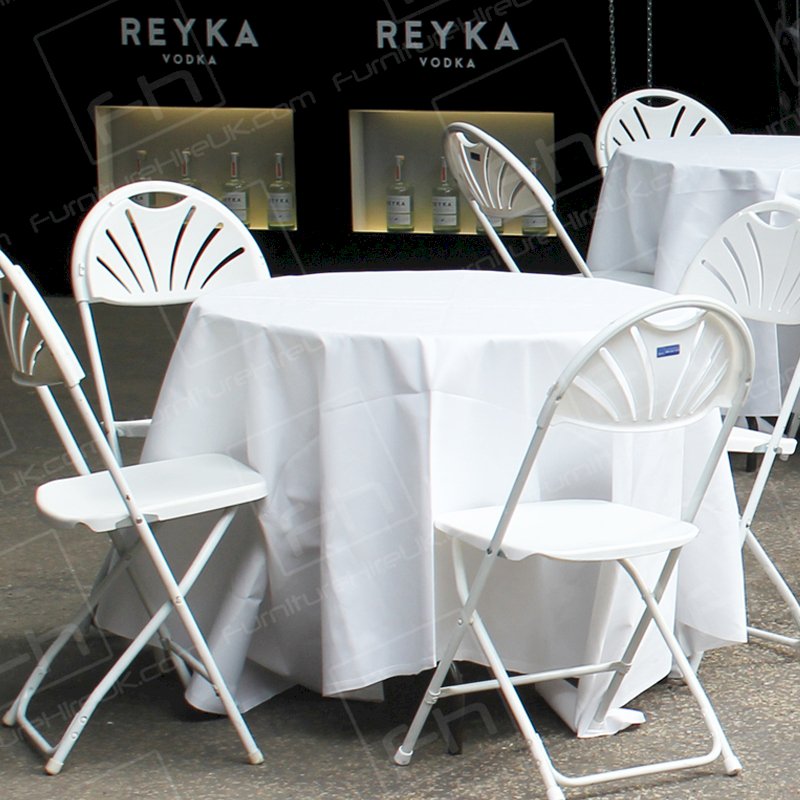 Our banquet tables, folding chairs & poseur tables ready for the event.