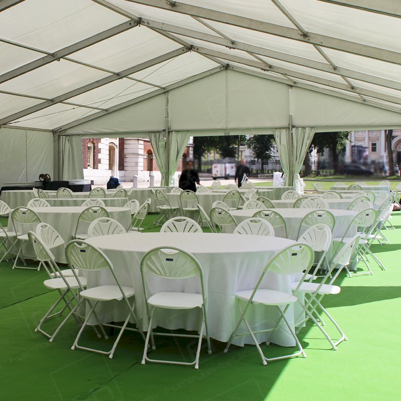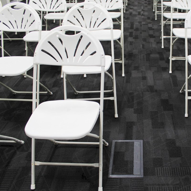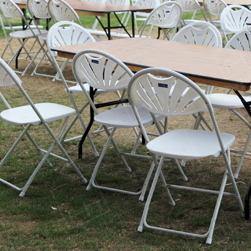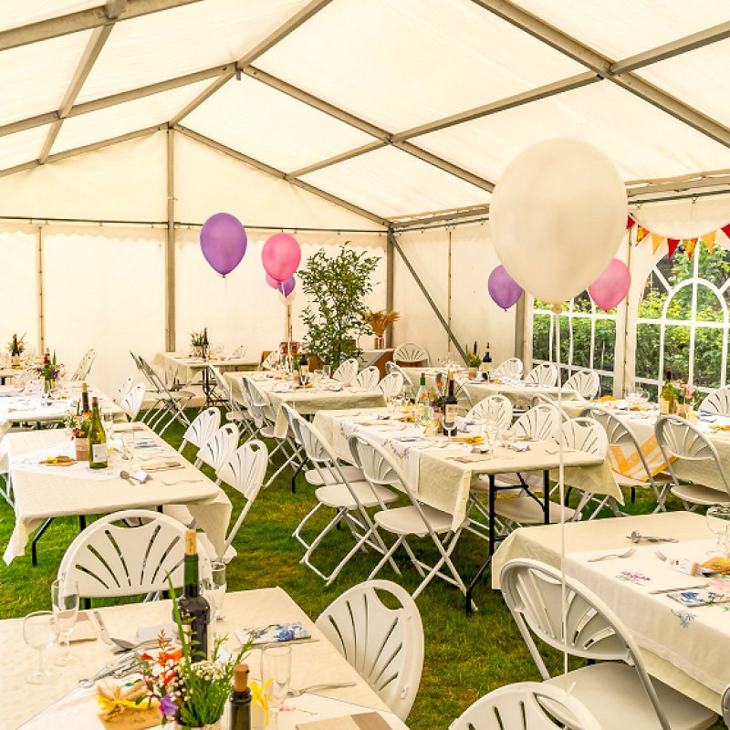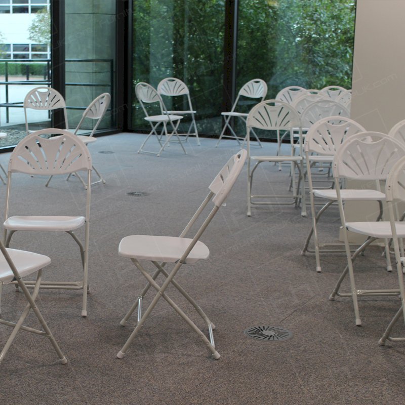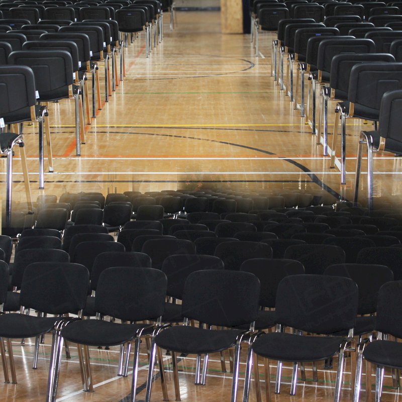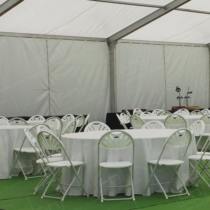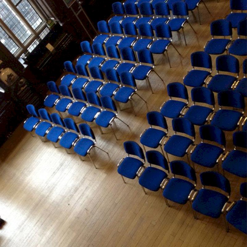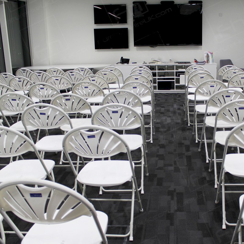 Our banquet tables, folding chairs & poseur tables ready for the event.