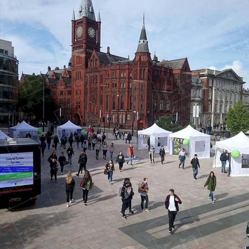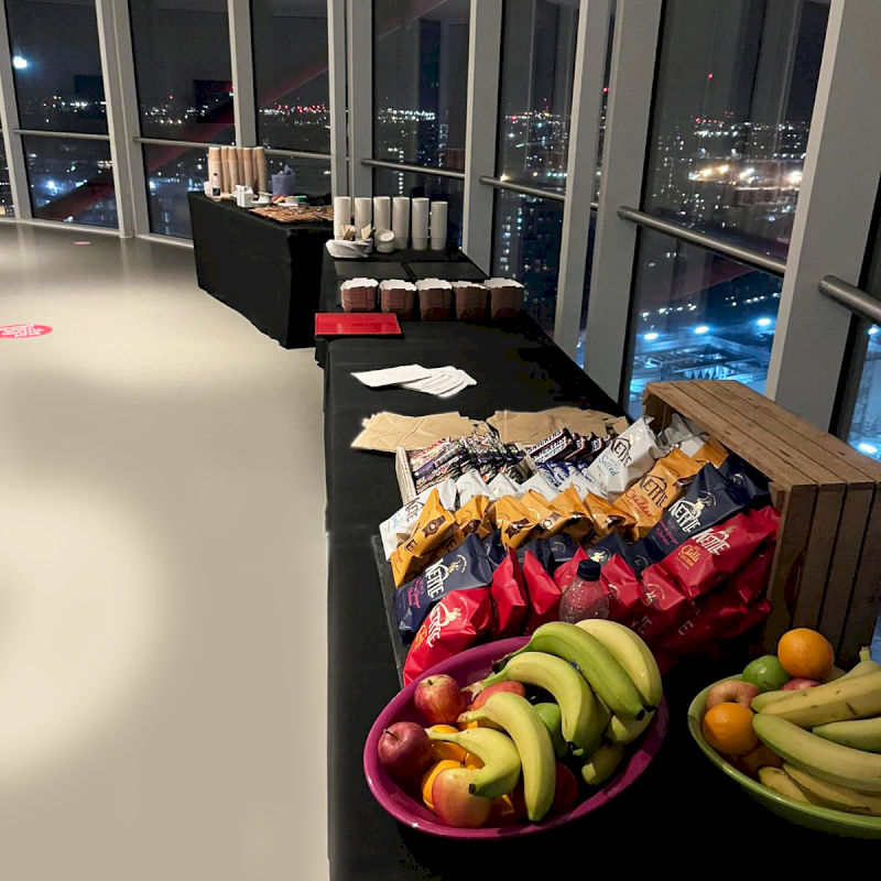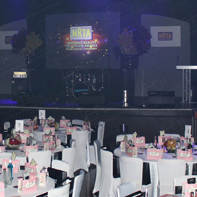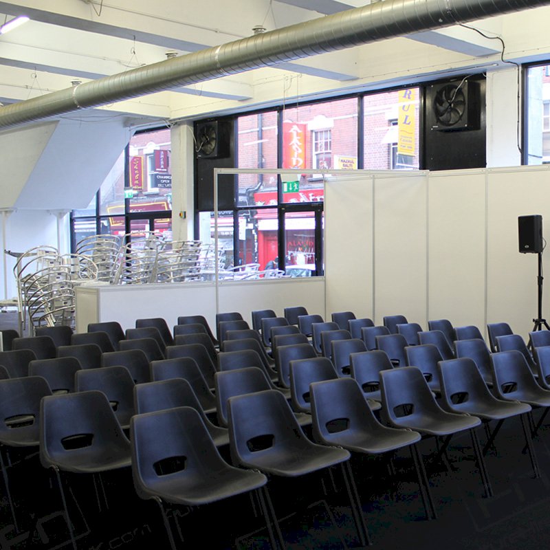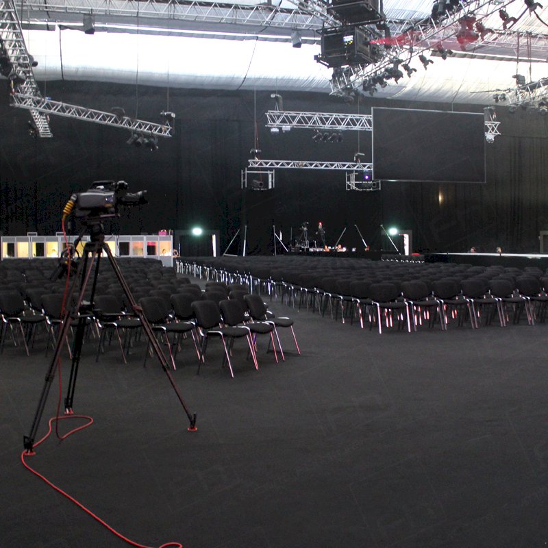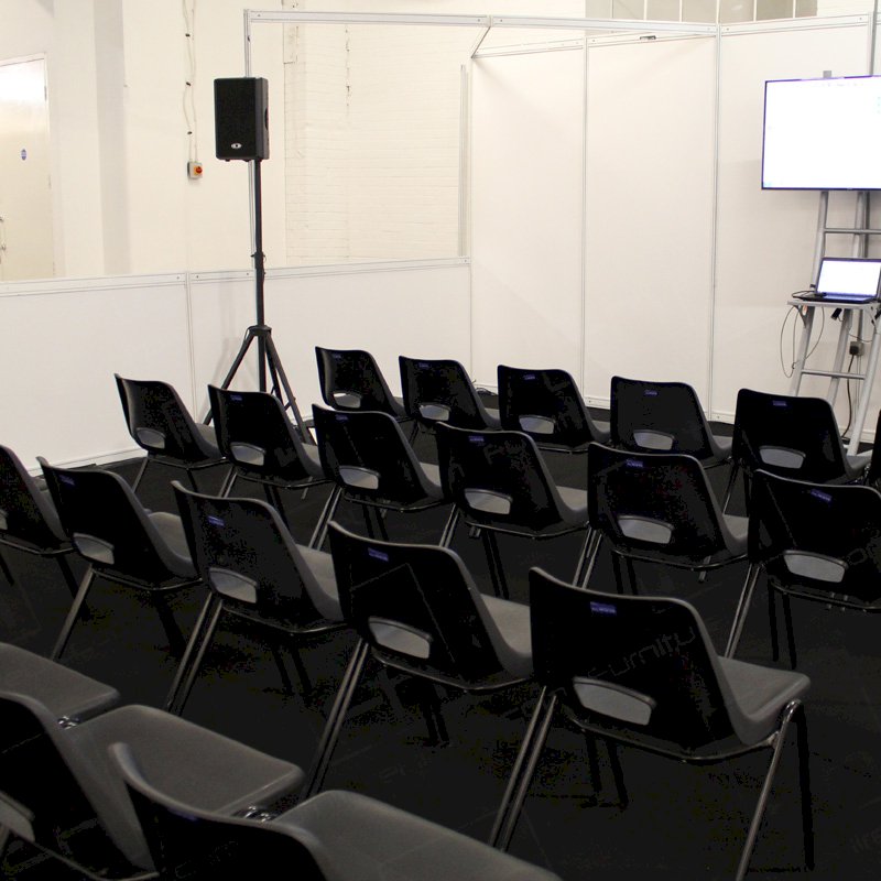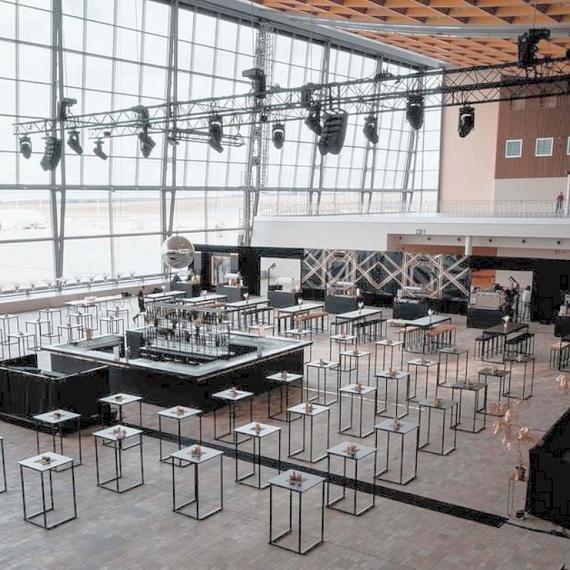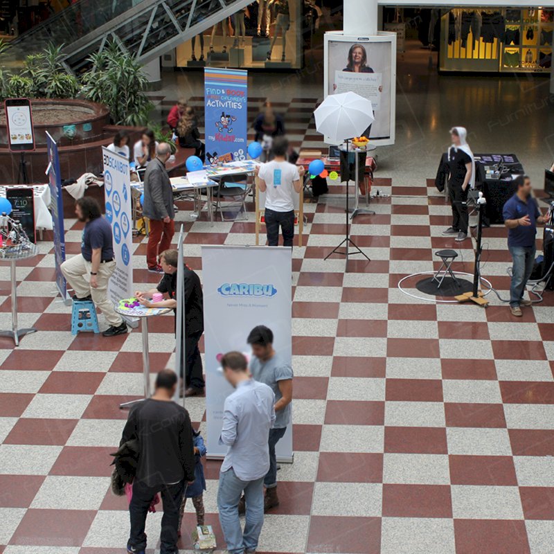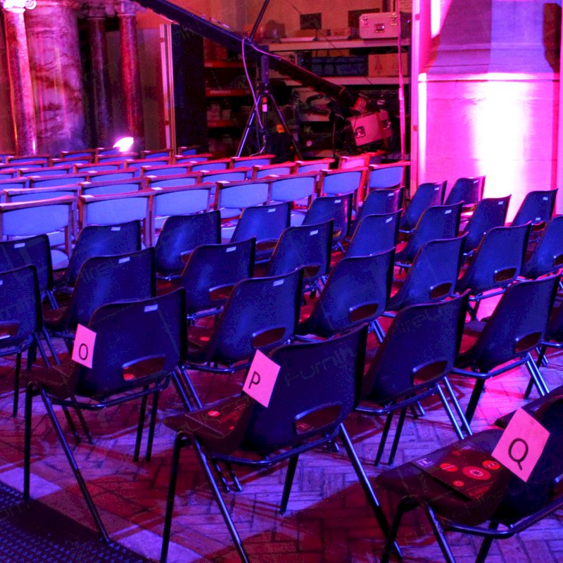 Our banquet tables, folding chairs & poseur tables ready for the event.