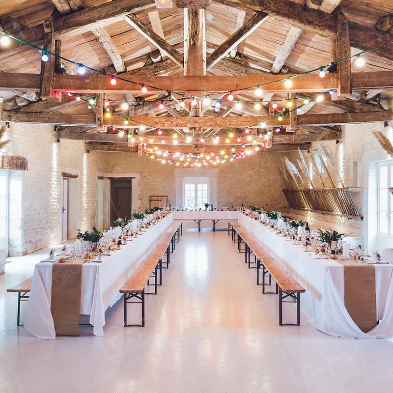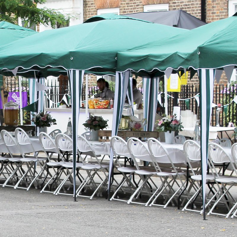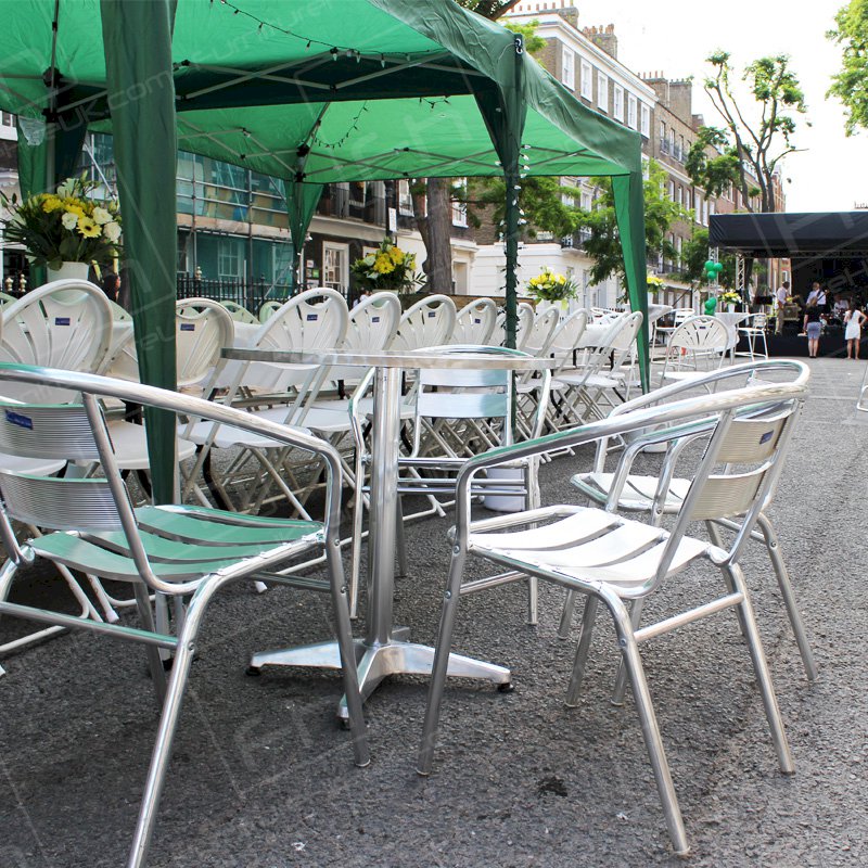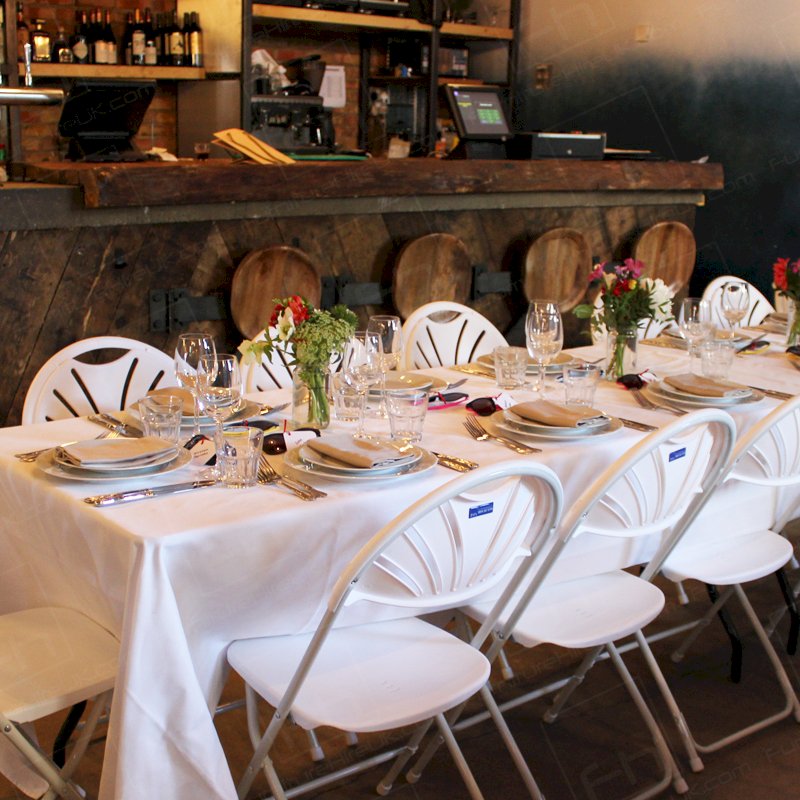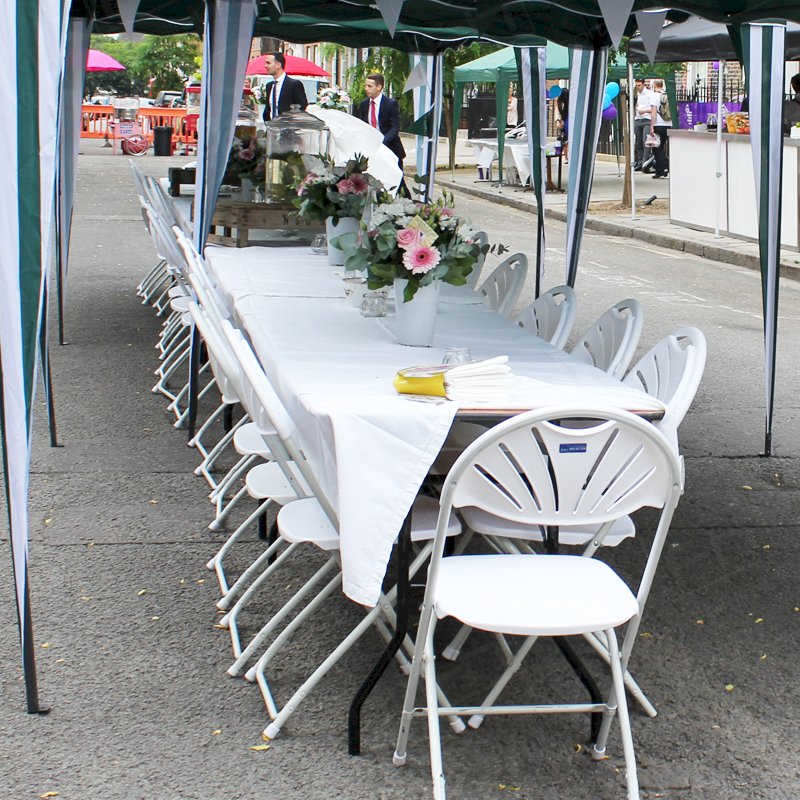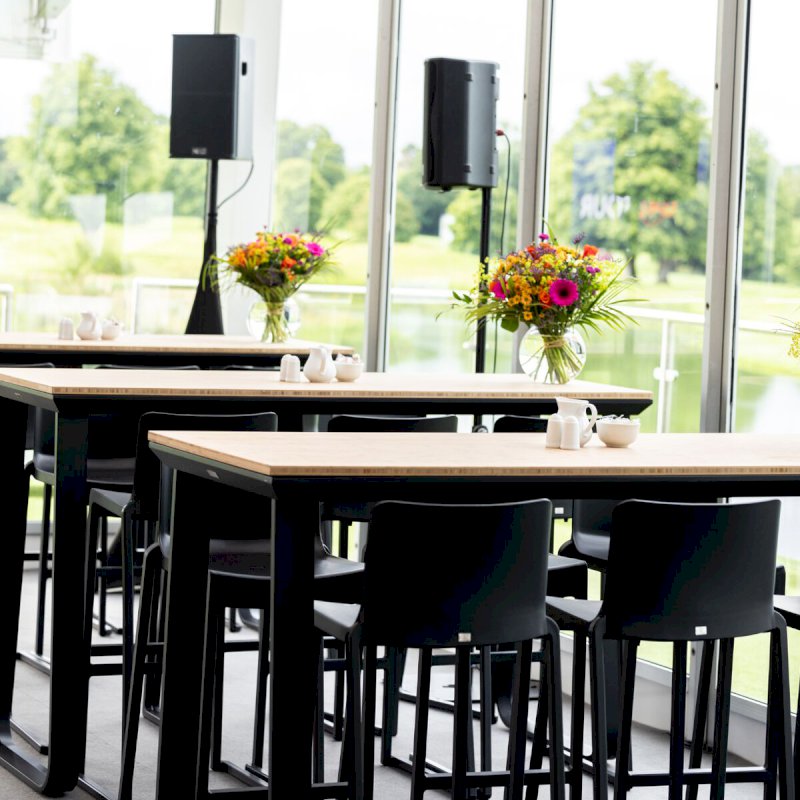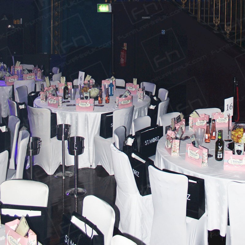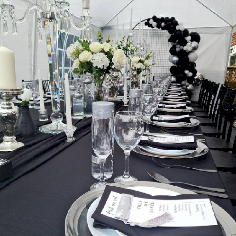 Hire black Utah tables alongside black Ski chairs to create a sleek, modern, and cohesive look for your event space.