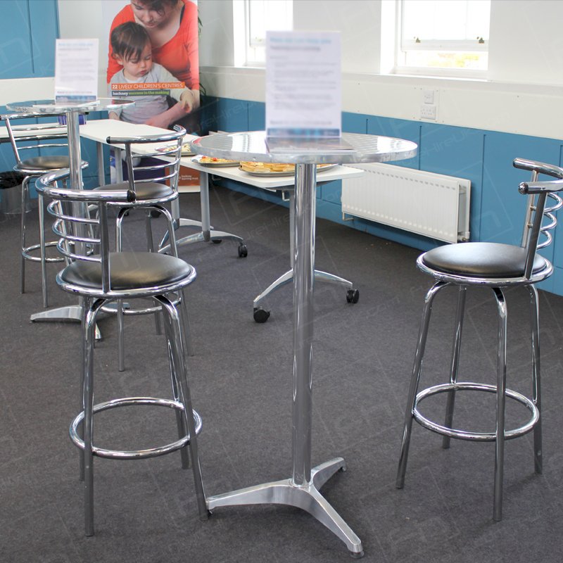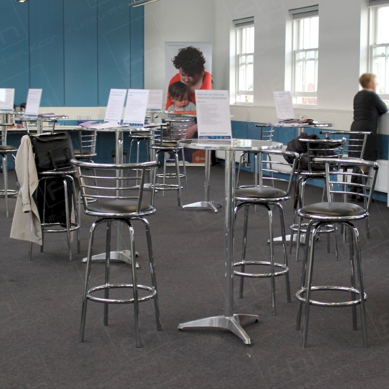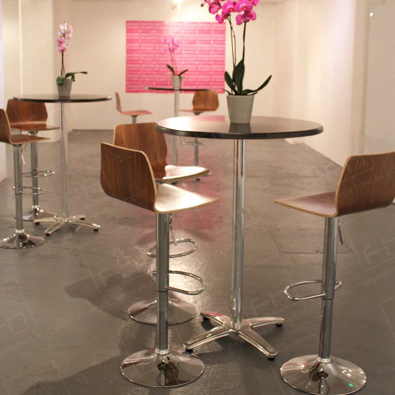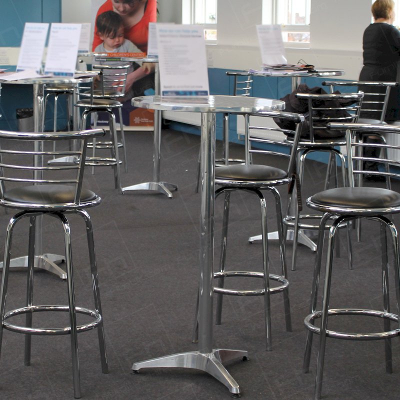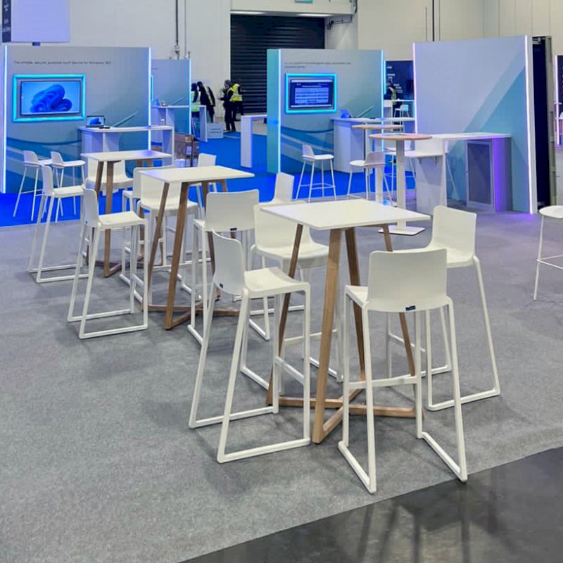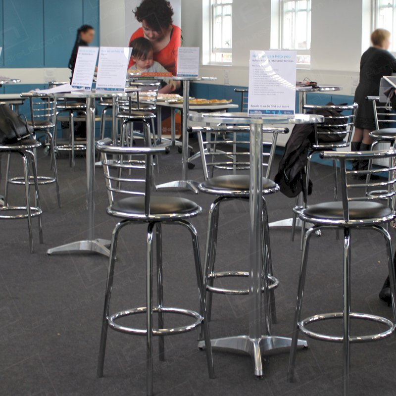Our coloured Spire stools bring together any specific theme or brand colours paired perfectly with chic Dallas tables.