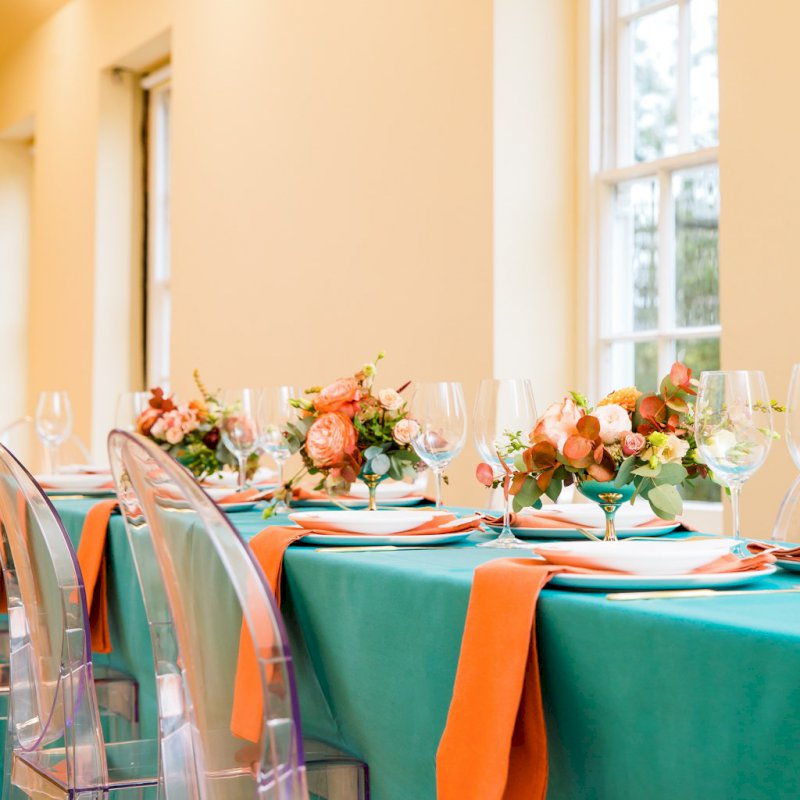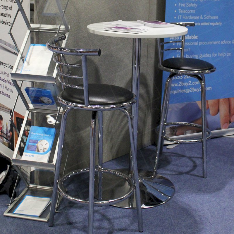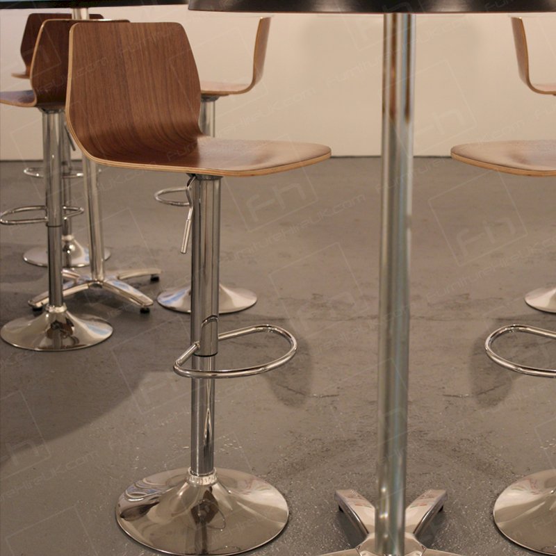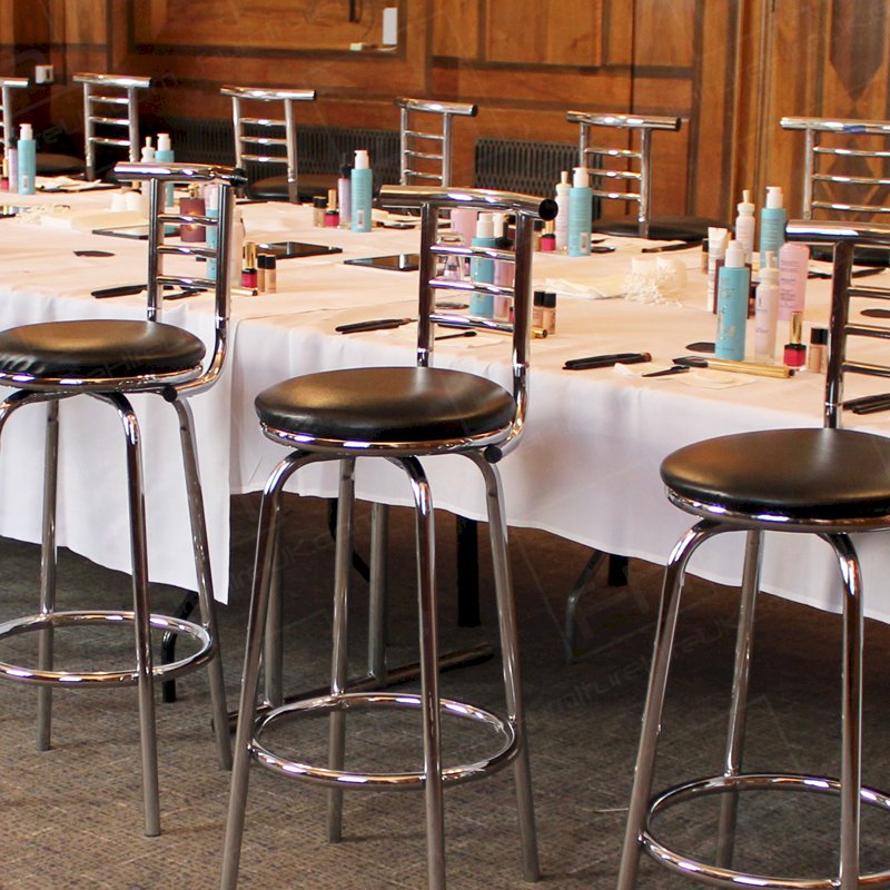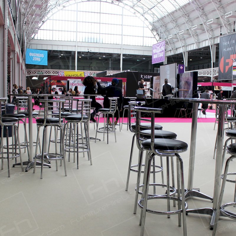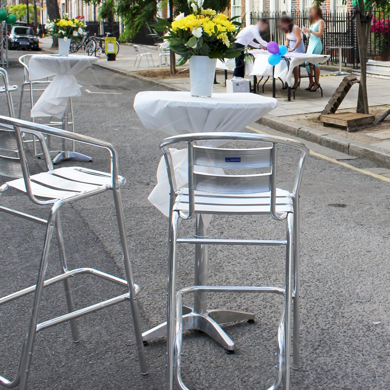 Our coloured Spire stools bring together any specific theme or brand colours paired perfectly with chic Dallas tables.