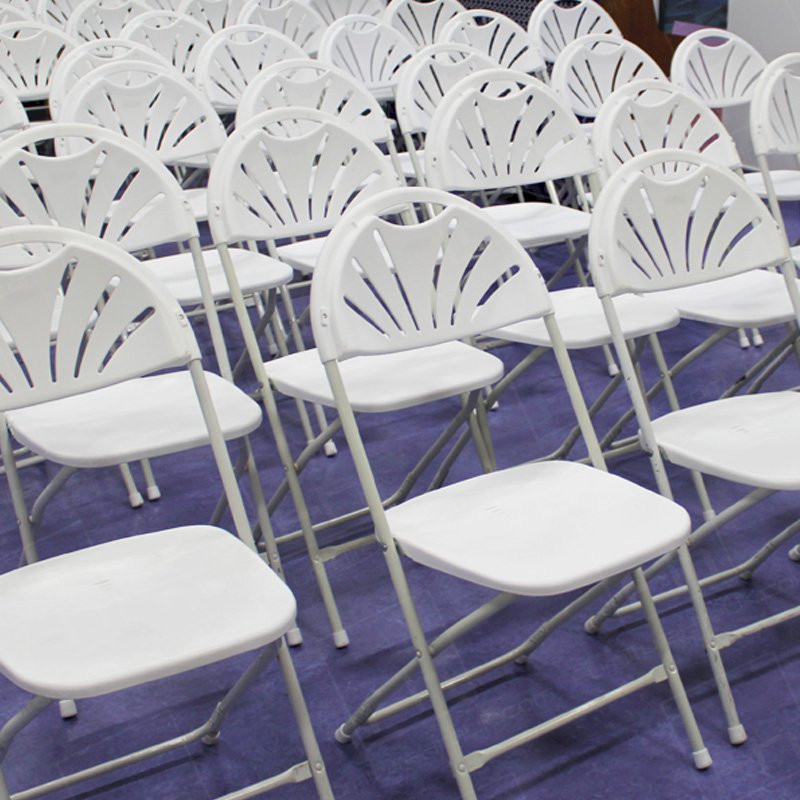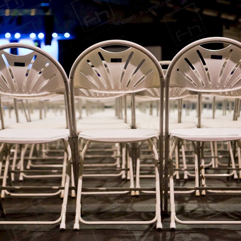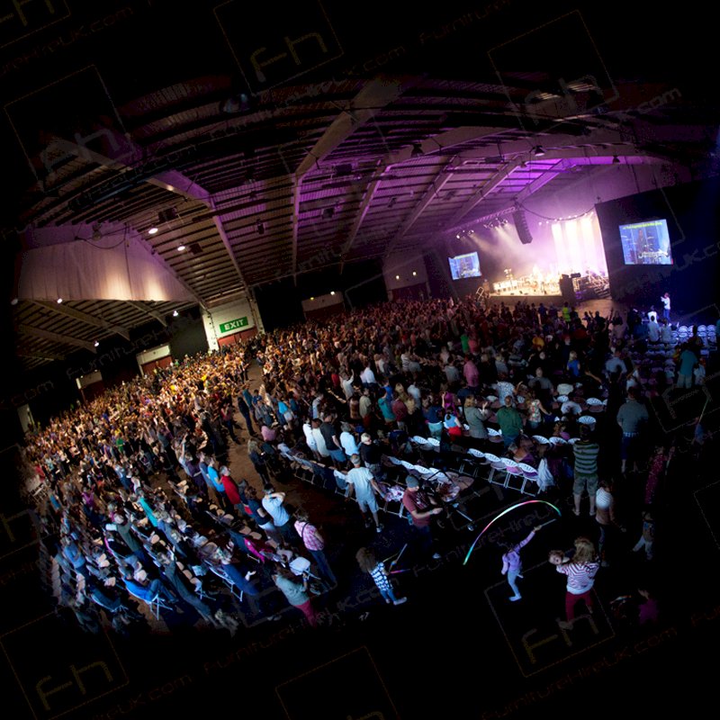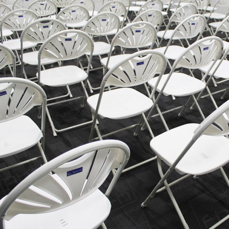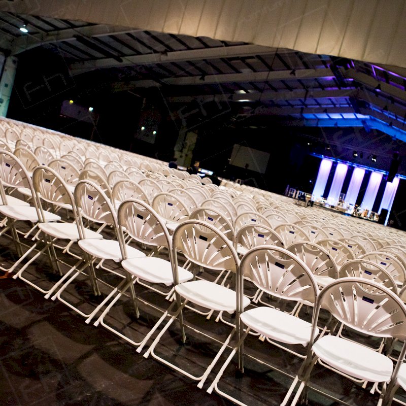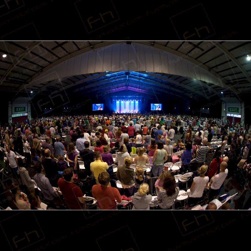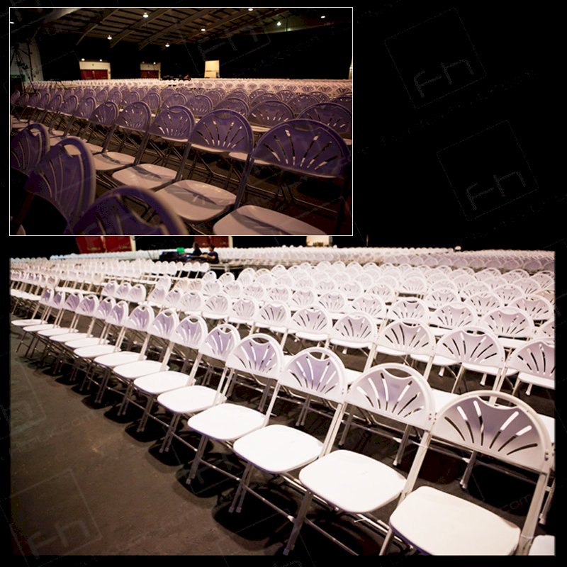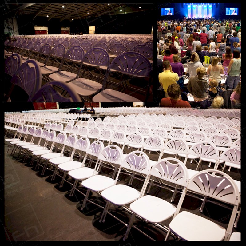 Lightweight chairs set up effortlessly for huge religious meeting.