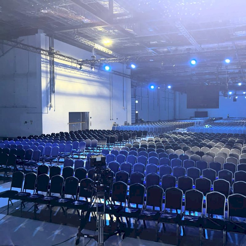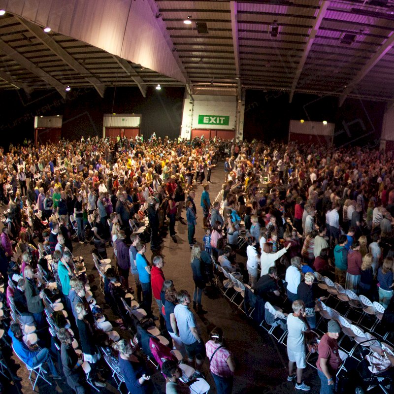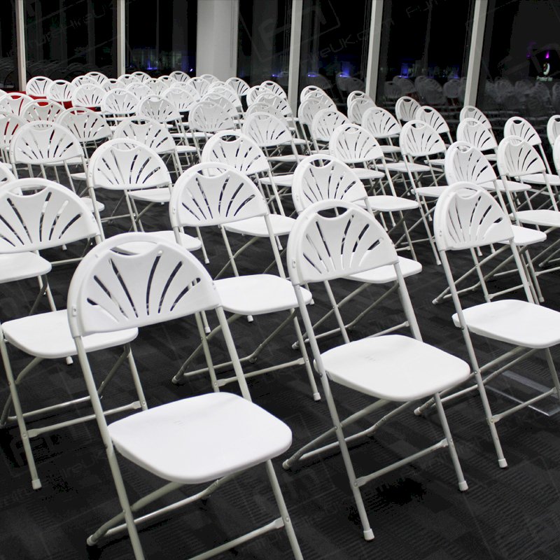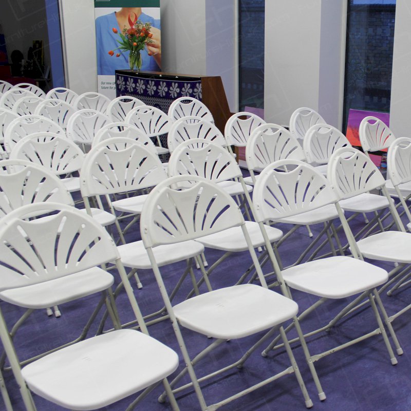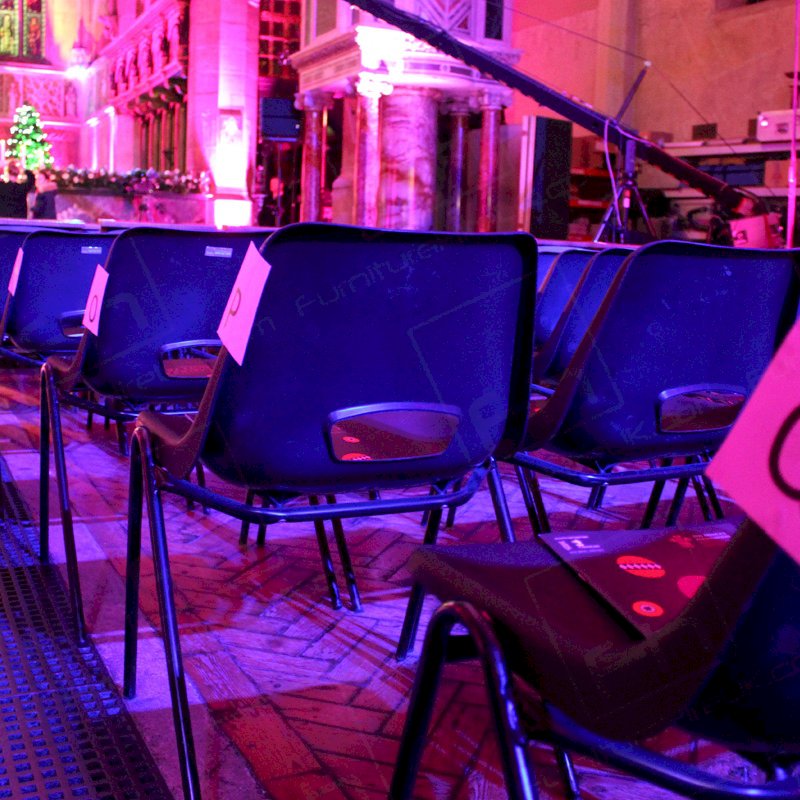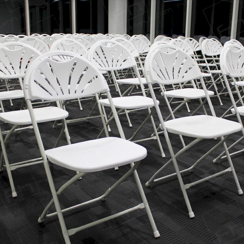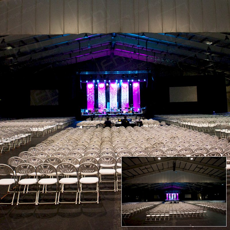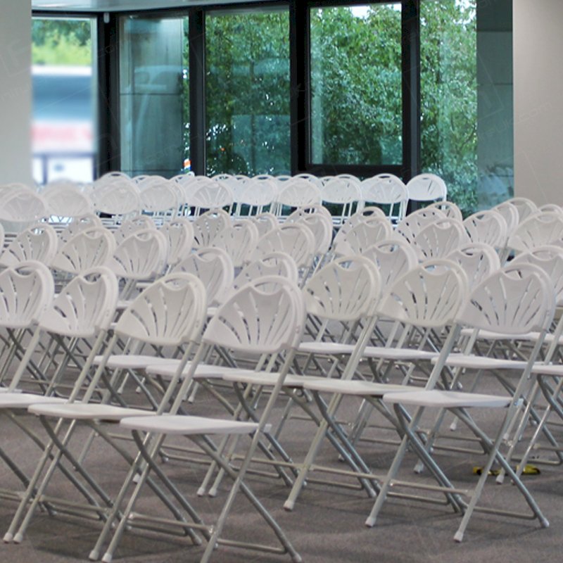 Lightweight chairs set up effortlessly for huge religious meeting.