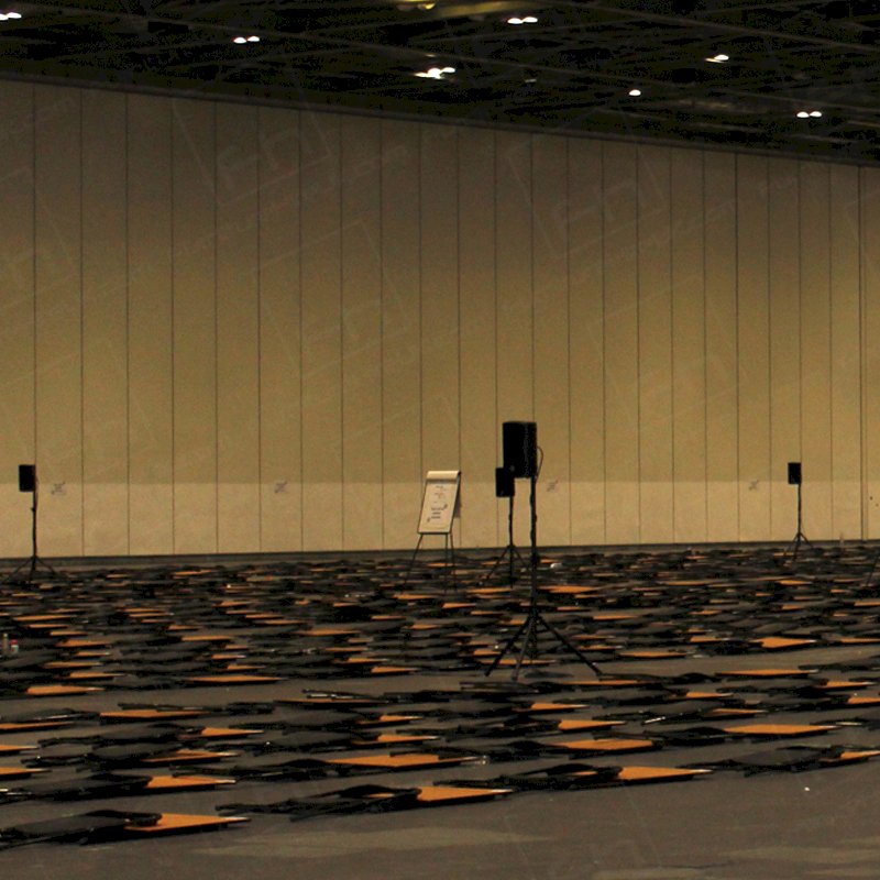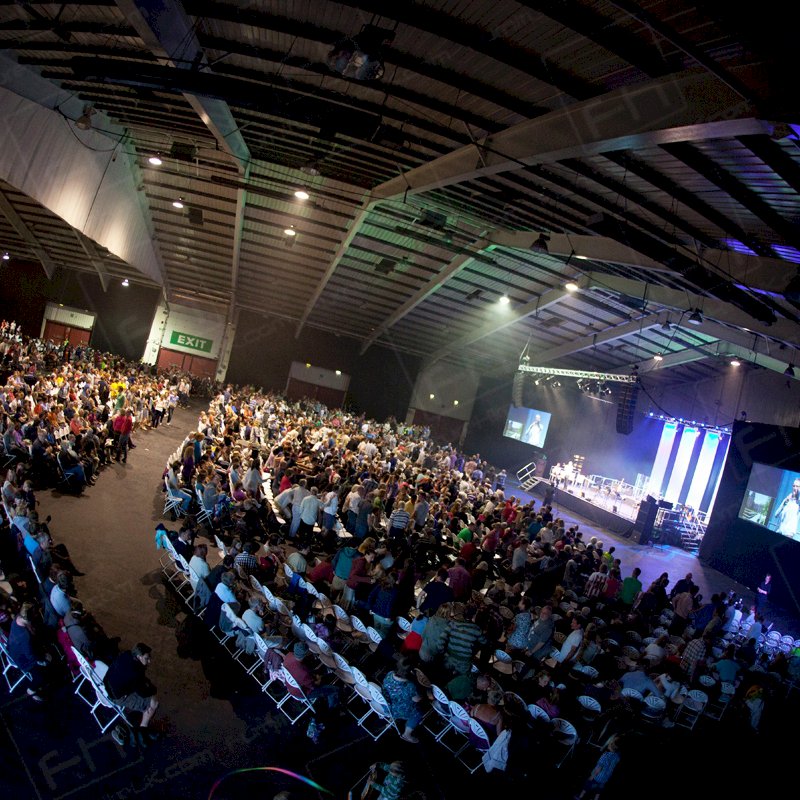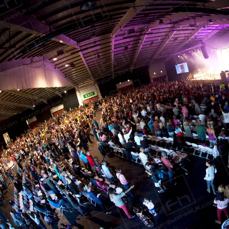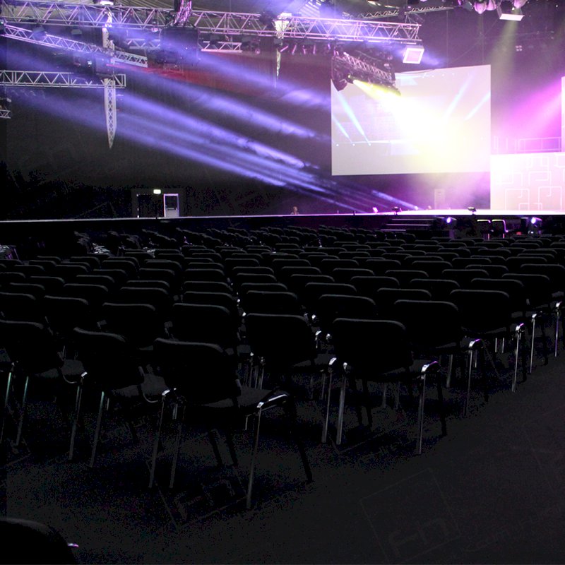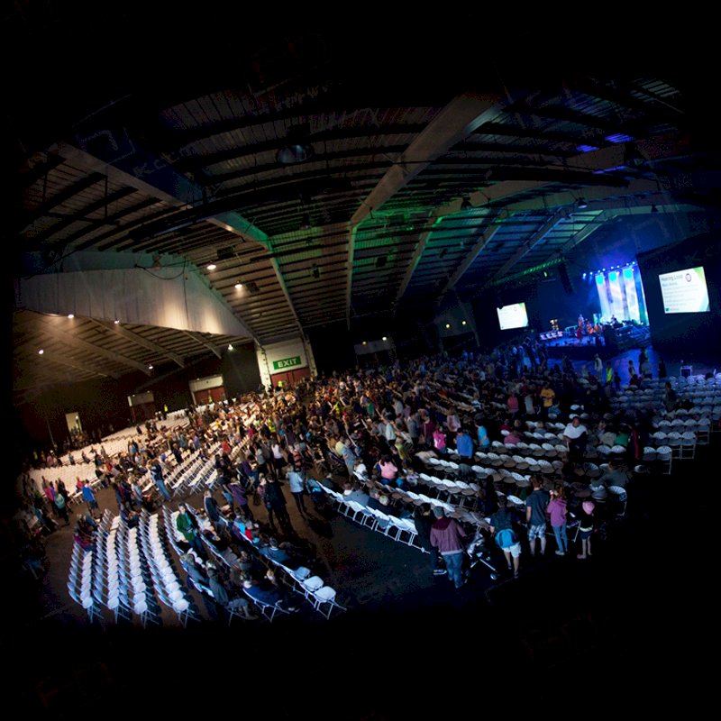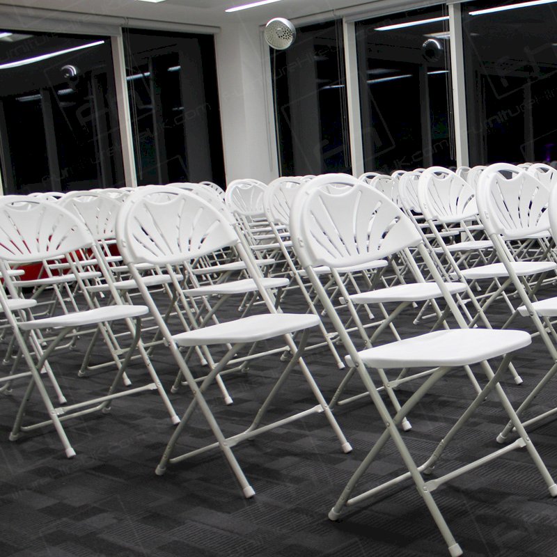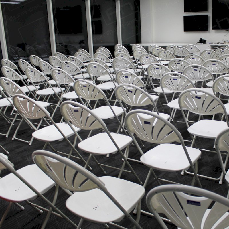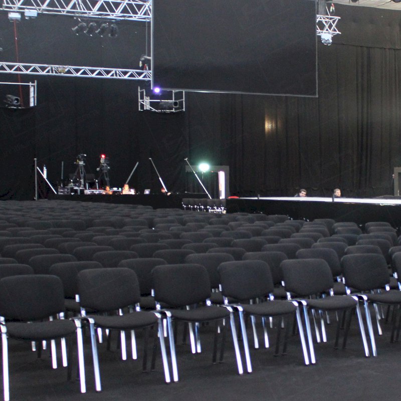 Lightweight chairs set up effortlessly for huge religious meeting.