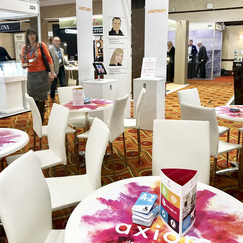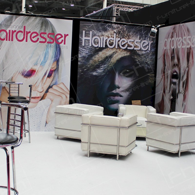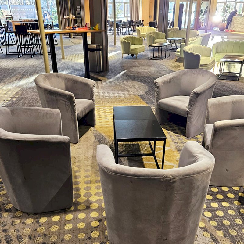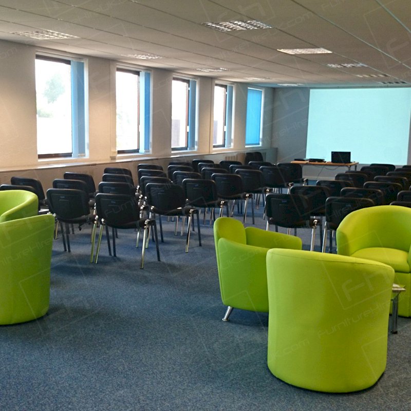 Hire our tub chairs and box frame tables to create a chic and sophisticated reception area.