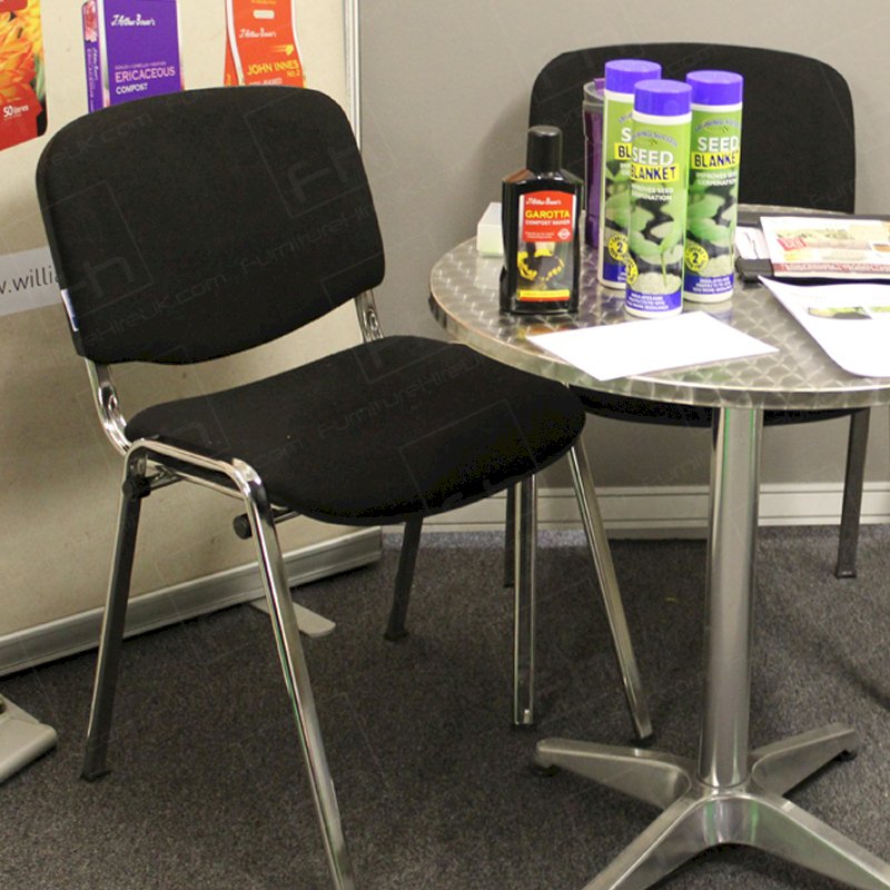 Add height in your Reception area with black Kansas stools and Dallas square tables.
