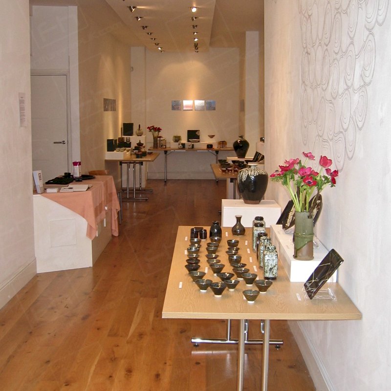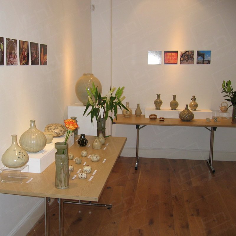 Artistic pottery exhibition displaying a variety of textures & colors.