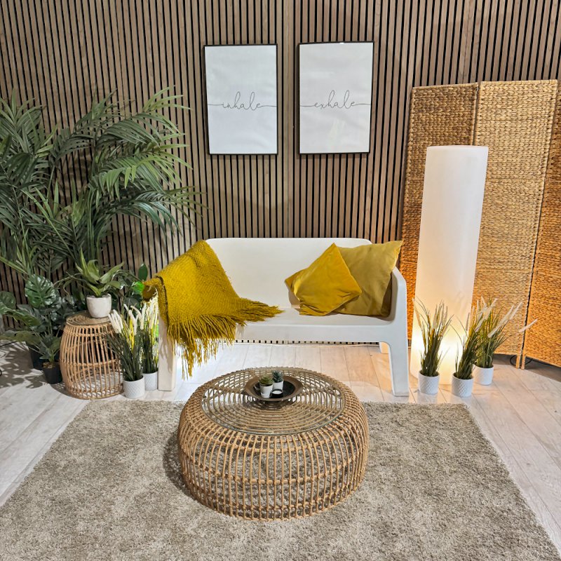 Create a fresh, outdoor space with our white rattan furniture, paired with funky bean bags for mixed seating options.